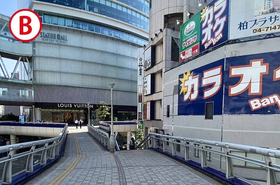 柏高島屋ステーションモールを通り西口のデッキから左手へ向かいます。
